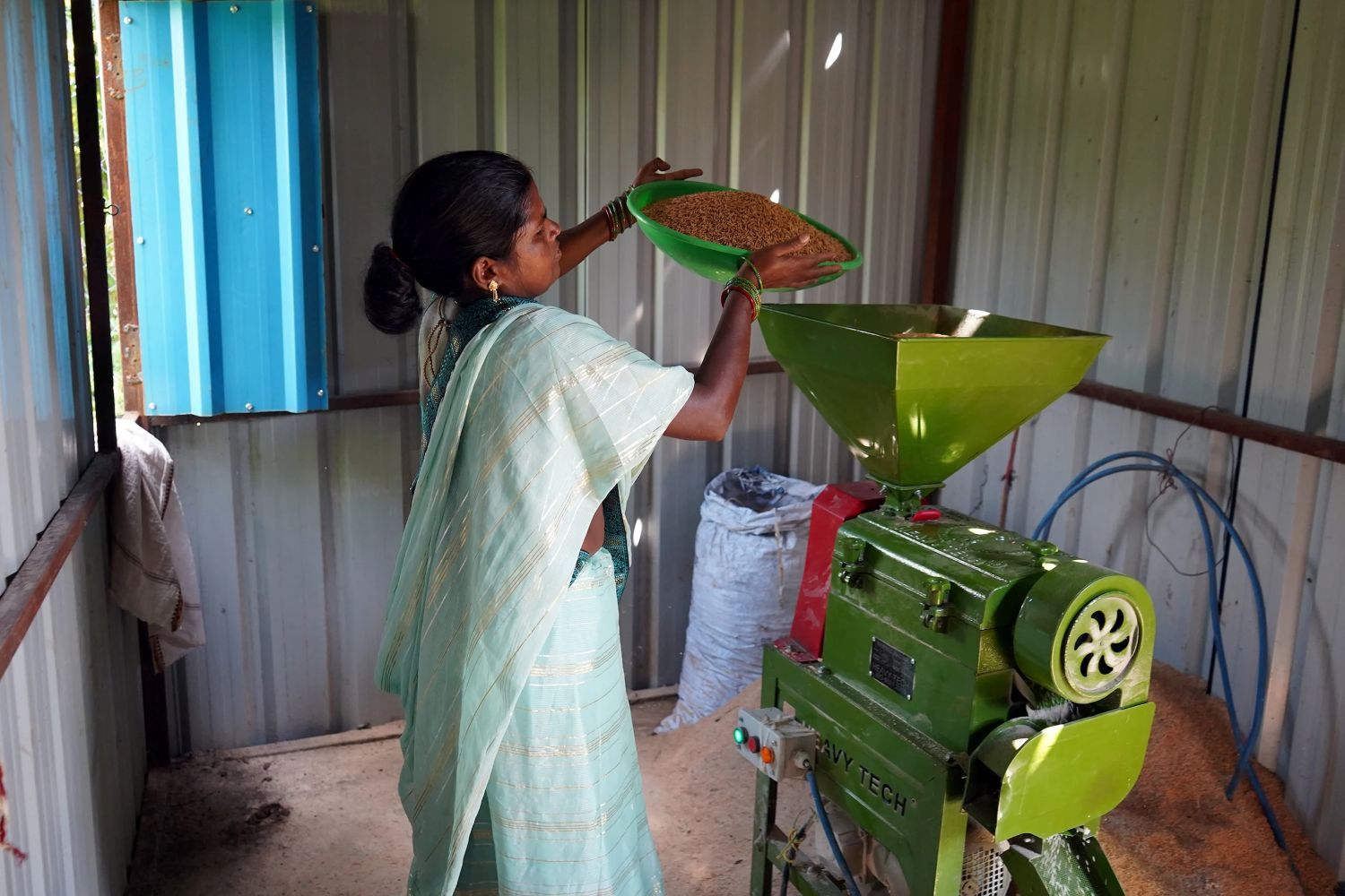 In Chimkatola and Kevlari, two women-led associations of water users have been set up for farmers involved in the homestead model. This has been done through a connected scheme to bring solar-powered irrigation pumps to 13 women farmers, supported by the CGIAR program and the Swiss Agency for Development and Cooperation. The associations manage the shared pumps and generate income by providing irrigation. Excess power from the pumps is used to turn a rice mill, allowing farmers to process paddy locally.