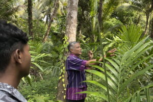 While John says that not every household has the time or space to maintain large homegardens like his, Kumar shares that even smaller gardens can play an important ecological role. Citing results from his studies in Kerala, he elaborates that since smaller homegardens are more species-diverse on a unit area basis, there are higher levels of carbon stock and biomass packing.