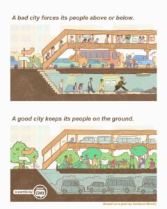 - Their satirical comics critique car-centric planning and political short-sightedness while sparking conversations on equity, access, and sustainable urban living.