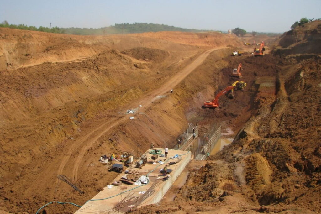 An inter-basin irrigation canal being dug in 2011 at Kankumbi village, which forms the headwater region of the Mhadei river in Karnataka (Image by Vidyadhar Atkore)