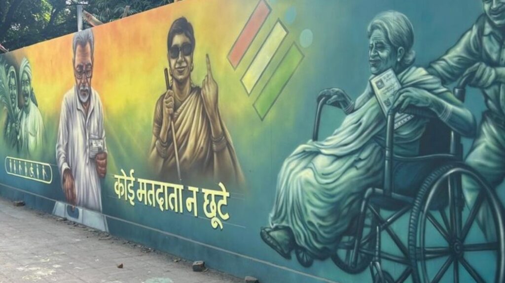 Graffiti outside the Chief Electoral Officer’s office in Patna urges people to vote (Image by Srish Prakash)