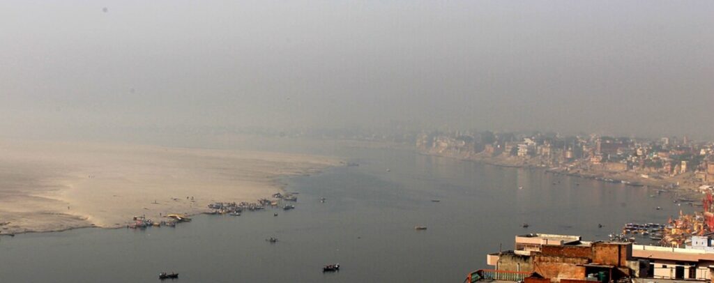 Aerial view of the Ganga river from Varanasi (Image by La Fessée via Wikimedia Commons)