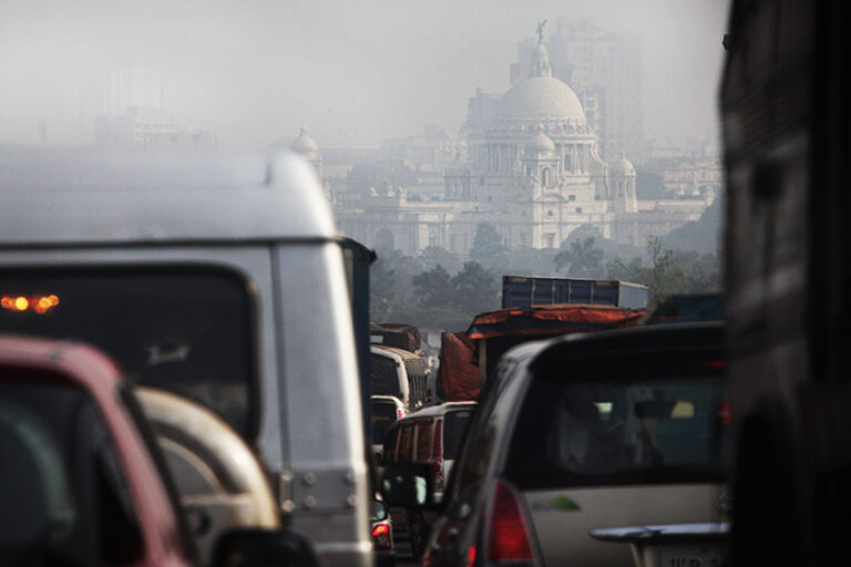 Victoria Memorial in Kolkata seen through traffic and smoke. According to a 2022 report on global air quality, Kolkata was the second-most polluted city in the world in 2019 when taking the city’s population into account (Image by Steve Evans via Flickr)