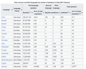 The 2011 census found that 44% of Indians, about 528 million people, speak Hindi as their first language (meaning what is spoken at home). Similarly, around 57% of people use it as a second or third language.