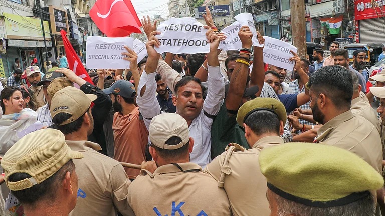 On August 5, Congress, National Conference, and PDP workers took to the streets in Jammu, demanding the restoration of statehood to Jammu and Kashmir. The protests coincided with the sixth anniversary of the revocation of the erstwhile state’s special status under Article 370, which led to its bifurcation into two Union Territories.