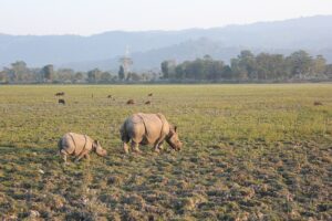 “We walk barefoot through the waterlogged area, guiding the mother rhino with calves crossing the water-filled highway. We restrain the vehicle speed, insisting the drivers slow down to curb accidental animal killings,” says Van Durga Boraik.