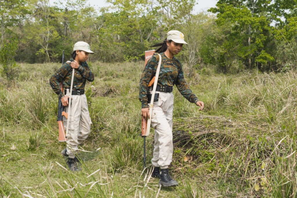 Bharali then saw two tigers atop the highland adjacent to their camp in the faint morning light. They had probably spent the night sleeping there. “This is what living in a jungle looks like,” shares Bharali, 23, from Garbhaga, a village in the Sivsagar district of Assam. Bharali joined Kaziranga National Park (KNP) as one of the female frontline forest staff entrusted with the role of safeguarding the Park’s biodiversity.